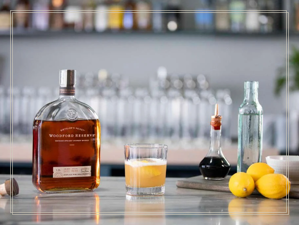 | 60mls Woodford Reserve Straight Bourbon Whiskey14mls of simple syrup22mls of fresh lemon juice7mls of egg whites | Shake egg white in a cocktail shaker. Add the Woodford Reserve bourbon, simple syrup, lemon juice and shake vigorously.Strain over ice blocks and garnish with a dash of Angostura® bitters and lemon peel twist. |