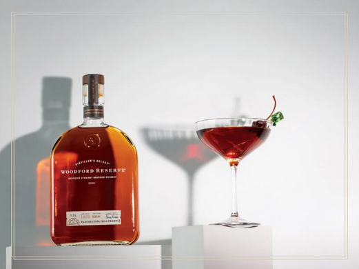 | 60mls Woodford Reserve bourbon22mls Sweet Vermouth3 dashes of bitters | Fill a mixing glass with ingredients, add ice, and stir gently for 10-15 seconds. Strain into a cocktail glass and garnish with a cherry. |