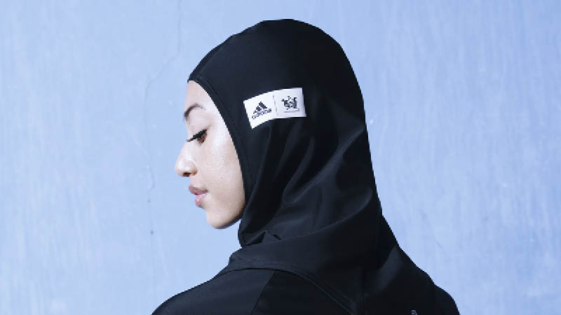 adidas x Thebe Magugu Swim Hijab: The Swim Hijab is made from chlorine resistant fabric that’s ultra-flat, lightweight and chlorine resistant. It also comes with an adjustable inner cap to ensure hair is kept tucked away and an outer layer that provides full coverage.
